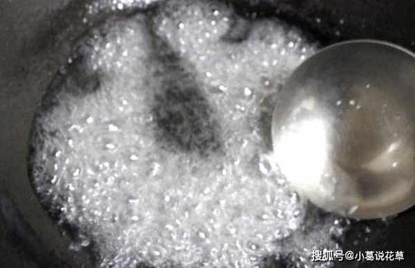 3、開始做糖漿,鍋裡加一小碗水,然後加入冰糖,小火煮開冰糖融化,變成糖漿後,用小火。
