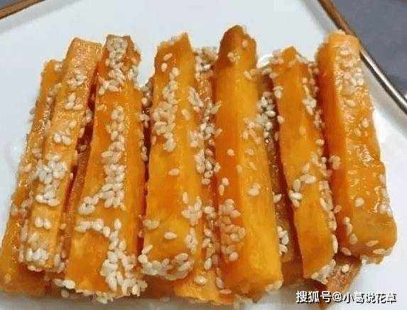 香甜酥脆的紅薯和芝麻條就做好瞭。你必須趁熱吃它們。紅薯條炸好後,我們迅速在上面塗上糖漿,久瞭紅薯條就變軟瞭。很好吃,所以我們需要先把糖漿炒一下,以後再用。如果不想炒糖漿,可以炒完再吃,也可以蘸著番茄醬一起吃。你都學會瞭嗎?那就給孩子做吧,比外面買的薯條吃還舒服!