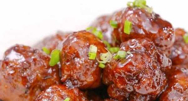 第六步:丸子出鍋後,把鍋裡的湯汁均勻的澆在丸子上,然後在丸子上撒上蔥花做裝飾,這樣好吃的丸子就做好瞭。