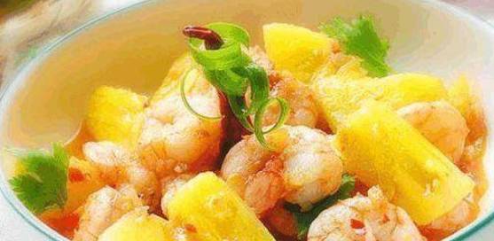 熱鍋倒一點油,下菠蘿翻炒一會,再放入大蝦,翻炒至蝦蜷成球形,加少許鹽和水淀粉勾芡即可出鍋