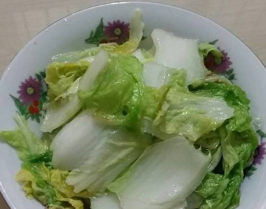 2.起油鍋,倒入切好的大白菜,翻炒一會;