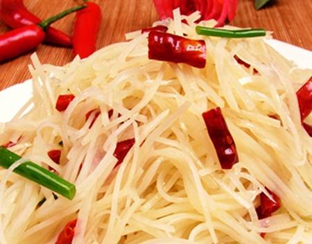 1土豆去皮洗凈切絲後用水清洗去淀粉瀝幹待用