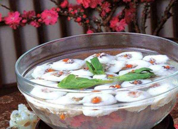 在長江三峽附近的宜昌城,有一道傳統的名貴湯菜———雞泥桃花魚,這是用桃花魚、雞脯肉、魚等原料制成的,成菜在湯碗裡邊猶如一朵朵清新艷麗的桃花。