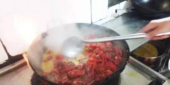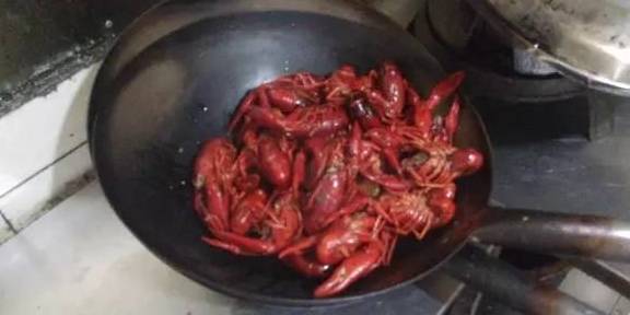 3、放入龍蝦炒至紅色