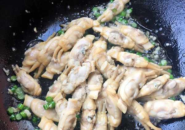 10.放入蟶子大火快速翻炒加入糖、鹽、味精炒勻入味