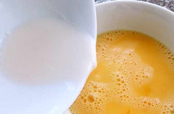 3.兩個雞蛋打散水淀粉倒入蛋液中可以稍稍加點鹽攪拌均勻