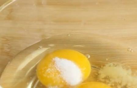 準備包子餡,先打兩個雞蛋,加鹽打散。