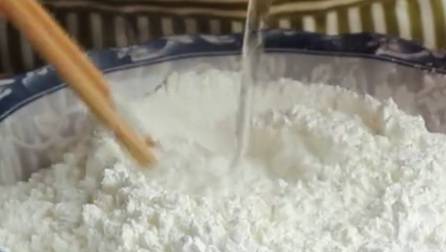 一碗小麥淀粉再加一碗玉米淀粉。用開水和面。