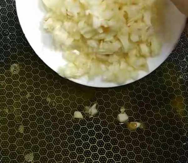 我們鍋裡面加入油燒熱,下入大蒜沫炒香。