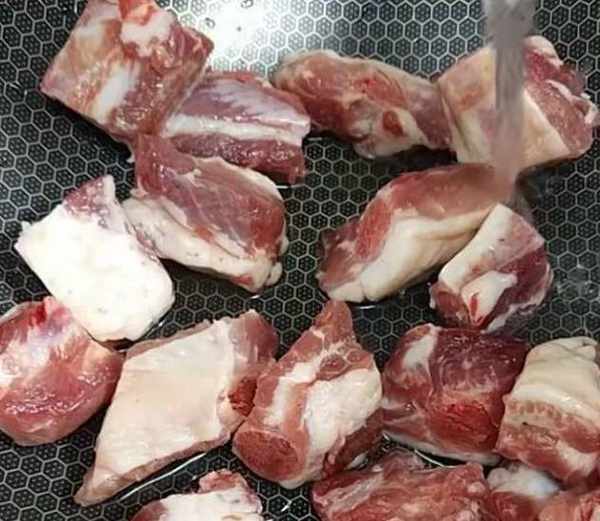 準備一點的排骨,然後下入鍋中,加入水,水要沒過排骨。