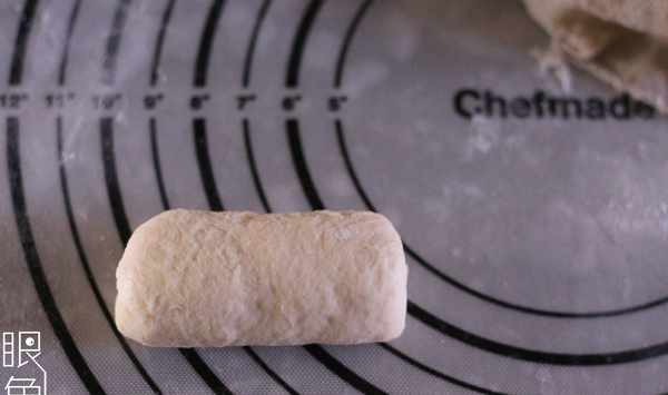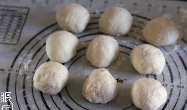 2.把發酵好的面團分成九等份,蓋保鮮膜醒面15分鐘。蓋保鮮膜是為瞭防止表皮風幹發硬。一定要蓋保鮮膜或者稍微濕一點的棉佈。