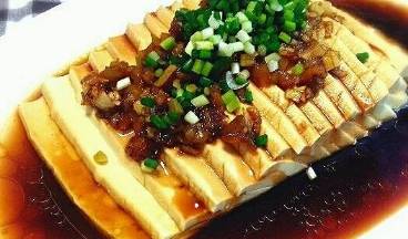爽口拌豆腐:1、將內酯豆腐取出後,過溫水洗凈,放入盤中,用瓷刀在上面切片。2、小米椒清洗幹凈後切圈,將花生米放入袋子中用刀背拍幾下。3、調汁:小碗中放入小米椒、花生碎、豆豉醬、香醋、白糖、涼拌醬油、辣椒油攪拌均勻。4、用勺子把花生米和小米椒澆淋至內酯豆腐表面,接著再澆淋上調好的涼拌醬汁。