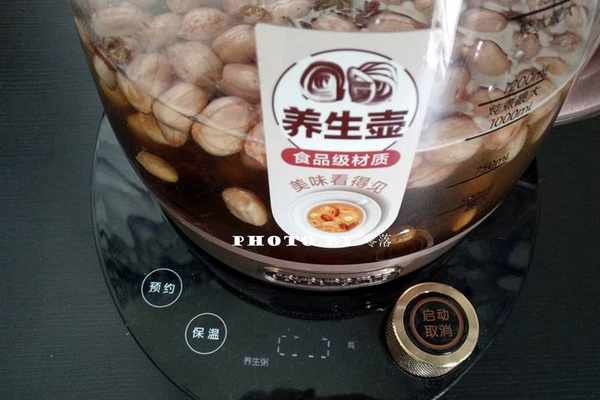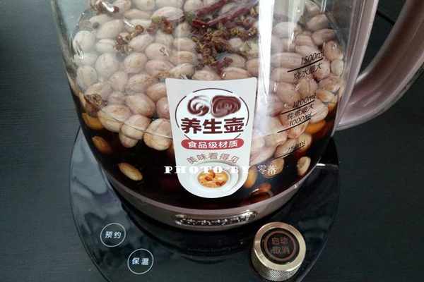 3、花生米淘洗幹凈後,放入養生壺,倒入適量清水;