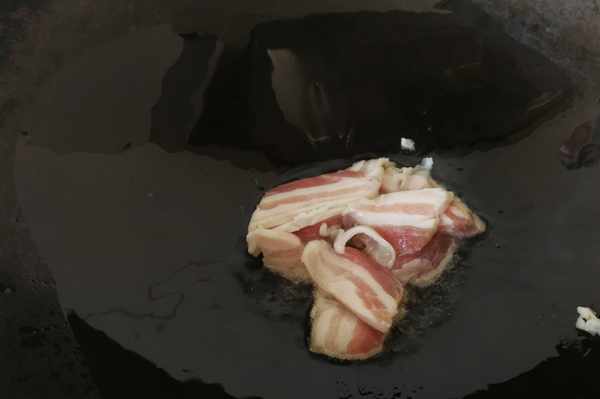 2、鍋中放入少許花生油,先放入五花肉小火煸炒出肥油來。