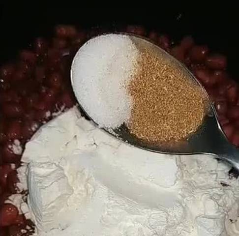 4、再放入少許的鹽和5克的五香粉,然後用筷子將它們攪拌均勻,讓每粒花生都均勻的蘸上粉末。