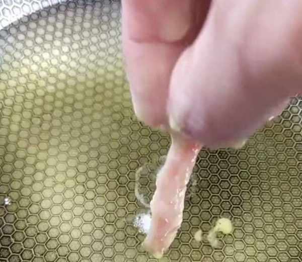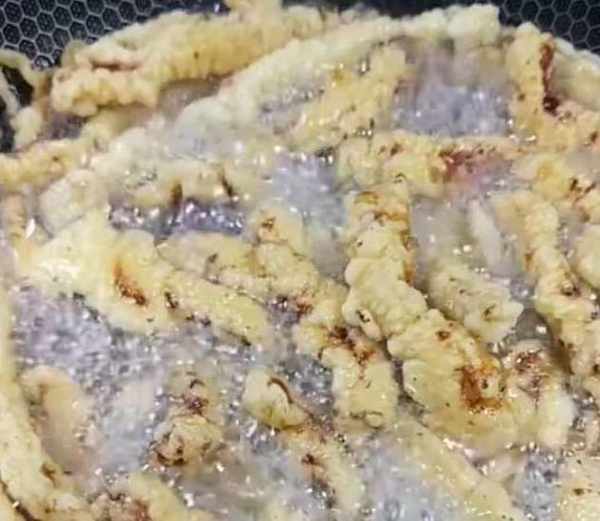 要一根一根的下進去炸,不要急,炸好之後就撈出來控掉油。