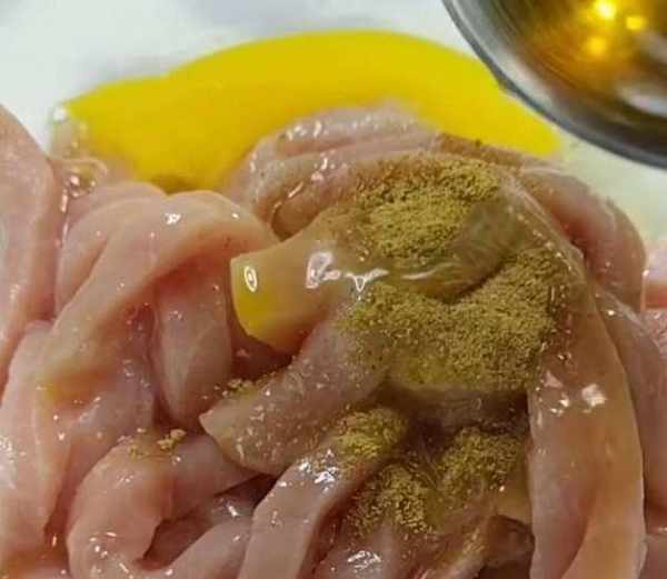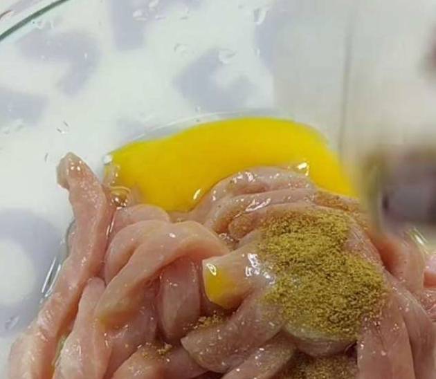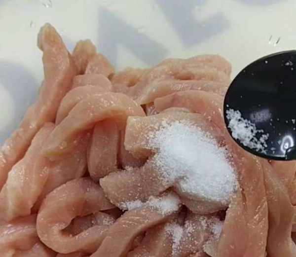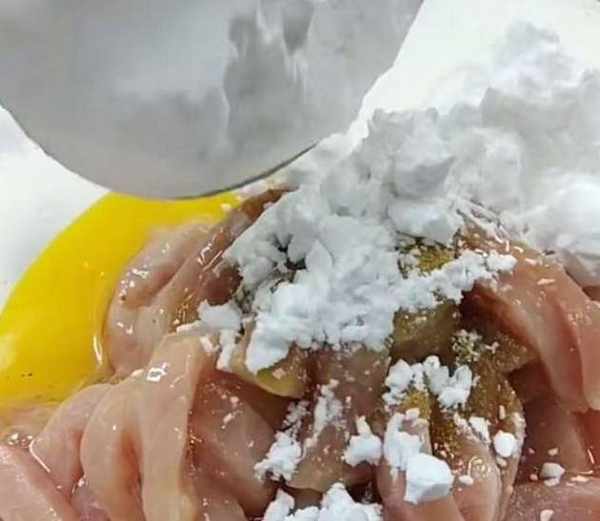 加入淀粉,淀粉要適量的。然後給拌起來,拌均勻。