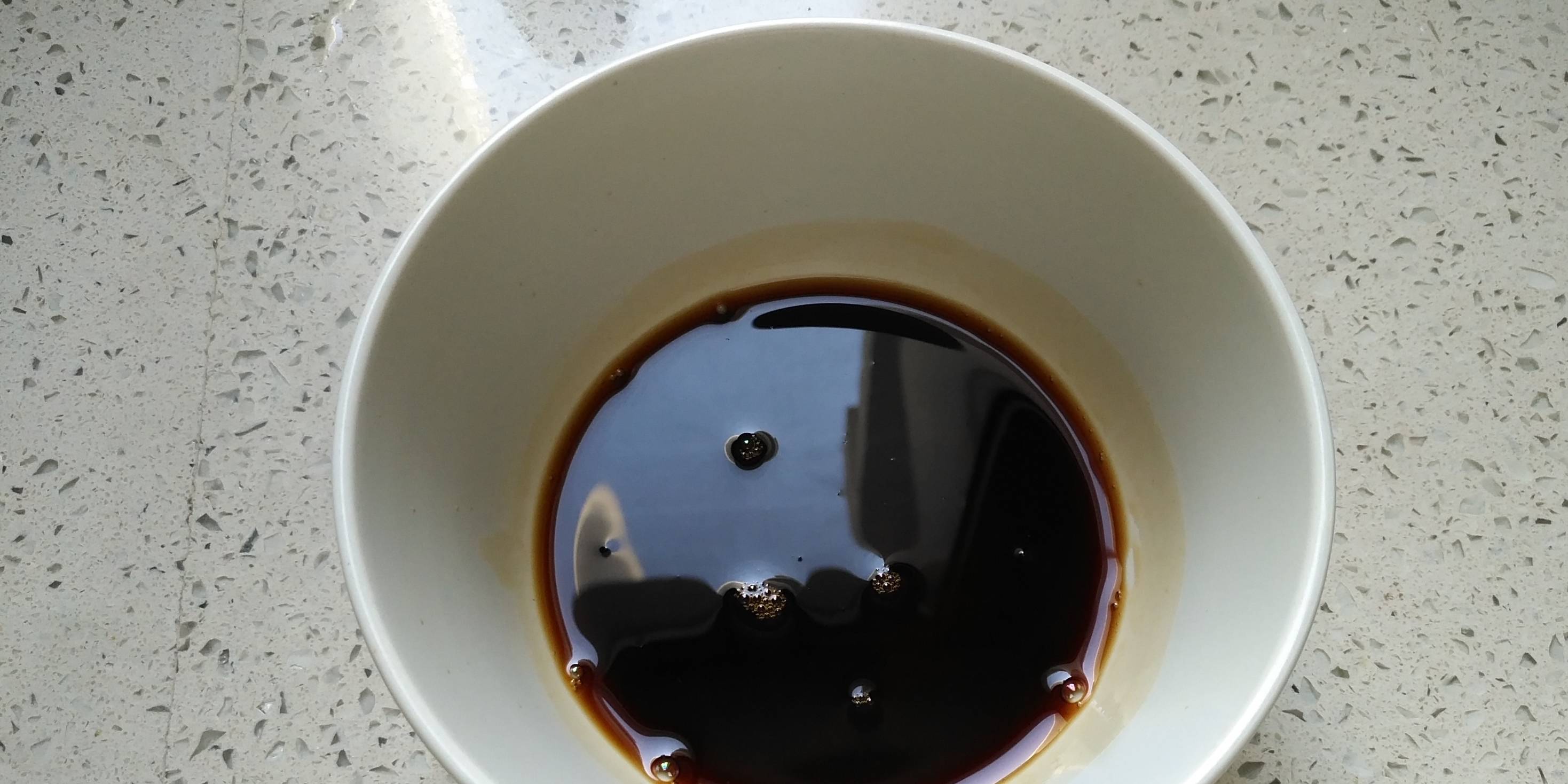 5.準備好料汁,兩勺生抽、一勺蠔油、1小勺涼開水、1克糖調勻。糖起提鮮的作用,一定別多。