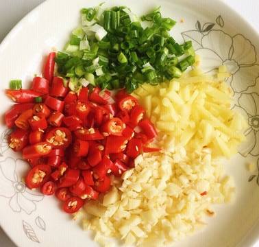 所需調料:蔥末、薑末、蒜末、小米椒、鹽、糖、生抽、蠔油、雞精、白芝麻、啤酒(或者料酒)