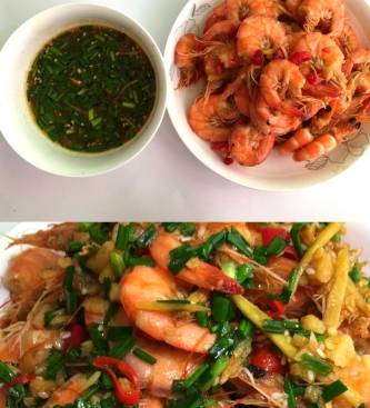 小米椒、蒜、薑、蔥切末備用、蝦買回來清洗(今天把蝦頭去掉瞭、可去可不去!)