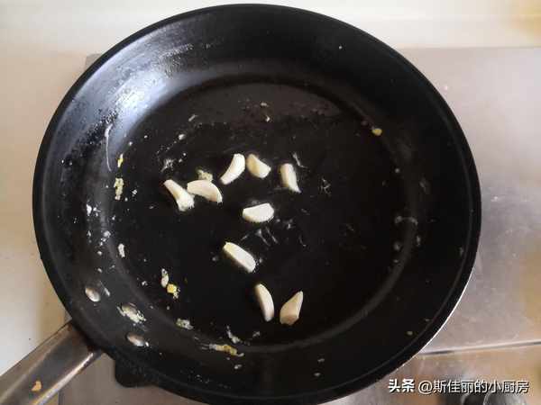 3. 鍋中少許油, 將少許蒜末放進鍋中煸炒香;