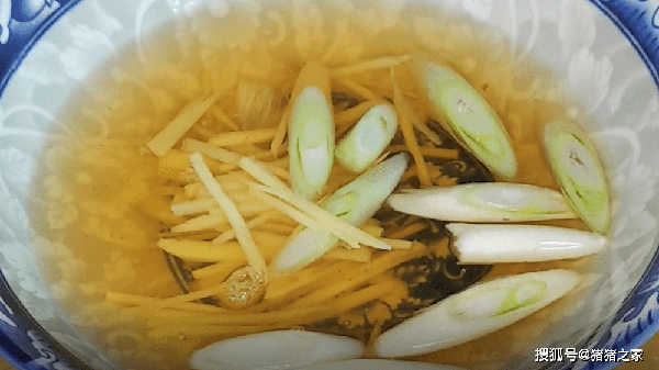 2.準備蔥薑大料水,鍋中加入一小把花椒,3個八角,然後加入少許清水蓋上蓋子,開大火把水燒開煮5分鐘。接下來準備一小塊生薑切成薄片,再切成細絲,再準備一小節大蔥,斜刀切成片。把切好的蔥薑先裝入一個小碗中備用。時間到瞭,我們把火關掉,然後把水倒出來過濾一下,過濾好以後稍微放涼。放涼後把切好的蔥和薑倒進來,然後帶上一次性手套抓捏一會兒,抓出蔥薑汁,用蔥薑大料水來調餃子餡兒,可以很好地去腥增香。抓拌好以後,我們先放一旁備用。