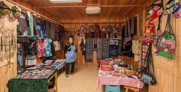 朗德苗寨唯一和現代化相結合的區域就是下寨的市場,相當於我們現在城市中心的商業區,下寨主要就是進行各種貨物貿易往來,是一個在古時就已存在的交易市場,以早上10點和下午4點為節點,而在交易市場當中,最有看點的就是苗寨的蠟染佈,這是一種很特殊的染佈手藝,將蠟燭融化之後,用特制的道具在佈上勾勒圖案,大多以藍底白花為主,看上去圖案豐富,顏色淡雅,很是樸素大方,民族特色十足。