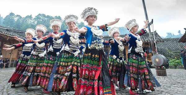 朗德苗寨自古以來還被譽為“民間歌舞藝術之鄉”,從一定程度上,這也反映瞭這裡歷史文化之久遠,其中蘆笙舞、板凳舞等等都是這裡的特色,村民大多打小就是能歌善舞,由於他們都是九黎部落的後代,所以穿著服飾一直都以苗族長裙為主,也被人們稱為“長裙苗”,這種服飾的色彩搭配和設計感是獨屬於朗德苗寨的特色。