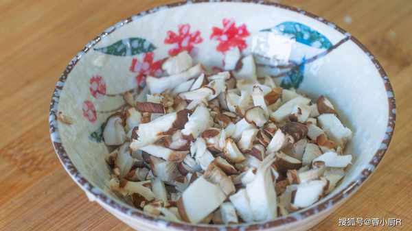 3、香菇4個,洗凈後切成小丁。