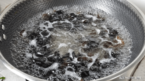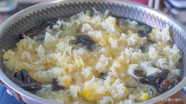 8、起鍋燒水,水開倒入木耳,煮一分鐘後再倒入銀耳,繼續煮一分鐘。