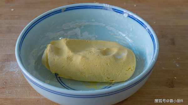 14、糯米粉用開水和面,出來的面皮不容易裂開,粘合性會更好,這裡我們用的是剛出鍋的南瓜泥,效果也是一樣的。
