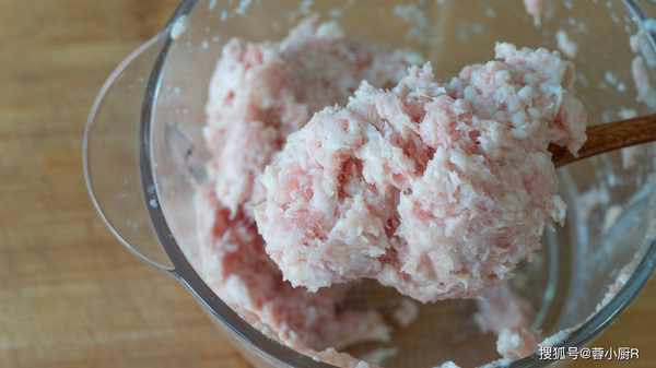 1、先準備一塊兒豬肉,清洗幹凈後切成小塊兒,然後裝入絞肉機裡面打成肉泥,打好後先倒出來備用。