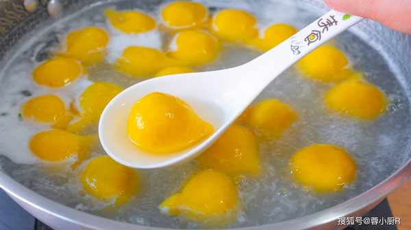 20、下面來煮湯圓,鍋裡的水燒開後再下入湯圓,用鏟子輕輕地推動幾下,避免粘鍋。21、接著大火煮個3-5分鐘,煮到湯圓全部飄起來就熟瞭。