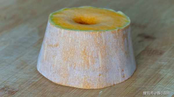 11、接著準備1塊兒老南瓜,去籽去皮後切小塊兒,凈重是200克。
