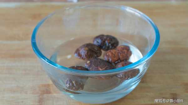 2、幹香菇準備5個,加溫水泡發。
