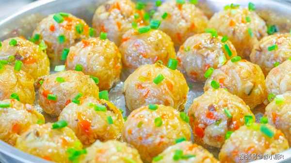 9、水開上鍋蒸,大火10分鐘就蒸透瞭。出鍋撒上小蔥花,好看又好吃的蘿卜丸子就做好瞭。