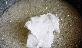 把材料1中的所有材料放熬糖鍋裡.
