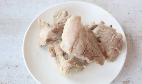 4.排骨冷水下鍋,水開後,煮3-5分鐘,撇去浮沫,撈出備用