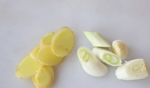 3.蔥切成小段,薑切成薄片