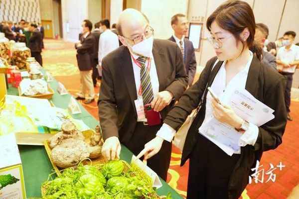 翻譯向華僑介紹江門時令蔬果。