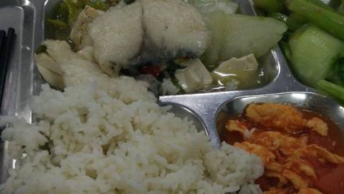 到瞭中午,我們就迫不及待的去食堂吃飯瞭,中午的午飯,也非常的可口,平均每一個人五元,不僅有甜湯,有咸湯,而且菜類也很豐盛,有五葷五素的,還有五葷四素的,也有水果,這些都是根據自己愛好自己打自己的飯菜,但是打瞭多少就一定要吃多少,不可以浪費。我在那裡打瞭一個番茄炒雞蛋,素三鮮,紅燒魚塊。清燉排骨,還有一碗銀耳湯,吃得非常開心,而且感覺很舒服,就像傢的感覺一樣。
