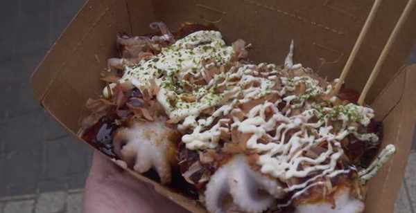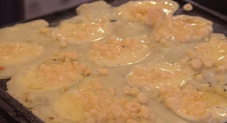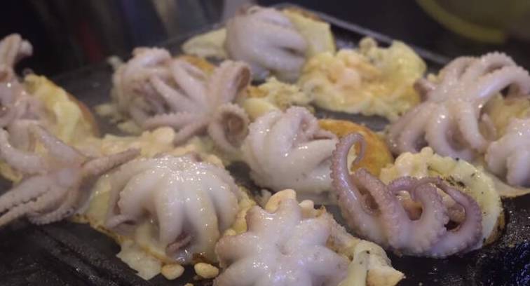 面糊裡因為放瞭雞蛋所以煎出來非常好吃,看著也挺不錯,一面雞蛋面糊,一面是八爪魚,路人都看得流口水瞭,這樣的小吃來買的人特別多。