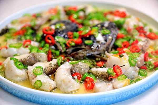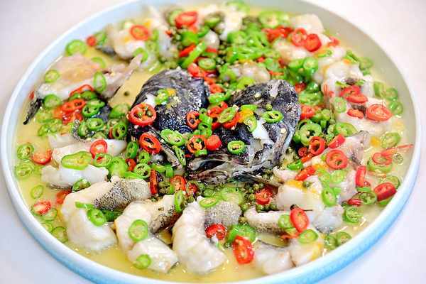 青青椒麻石斑魚 ,魚肉大塊厚實口感細嫩,清麻清辣更突顯魚肉的鮮美,回味無窮!