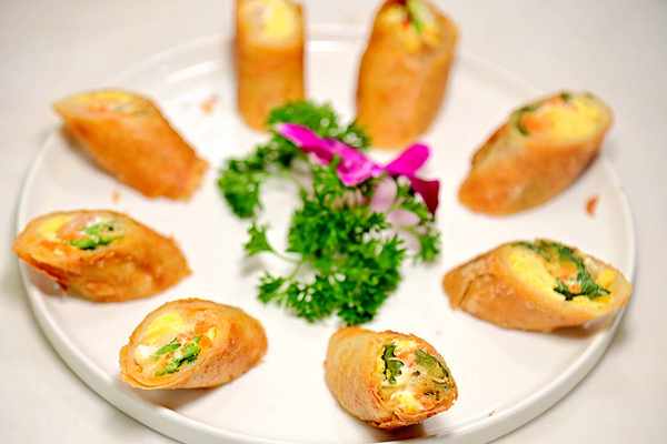 海鮮卷,這是一道手工菜,金燦燦十分誘人,外殼香酥內餡紮實,口感滋味層次豐富,令人驚艷!