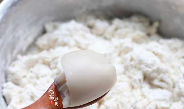 2.把面粉用筷子調入酵母水、鹽和豬油,拌成絮狀後,下手把散粉都揉成面團,面團揉成團醒幾分鐘,再去揉就會特別光滑。