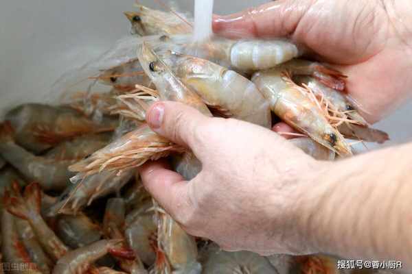 2、蝦洗凈,蝦須、足;在蝦背部剪一刀,挑出蝦腸,也以便入味,用廚房紙吸幹水份備用;
