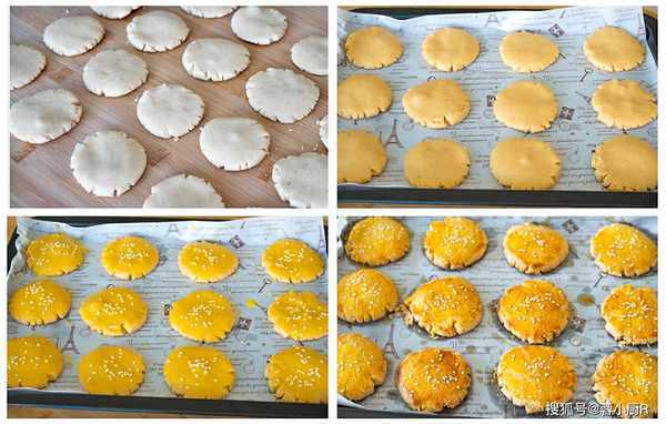 4、搓長條後分成小面劑子,大小你們自己喜歡就好,分好後先搓圓,再按壓成小餅,輕輕的按壓下後,邊緣會自然開裂,但是沒有關系,烤出來也會非常好看;