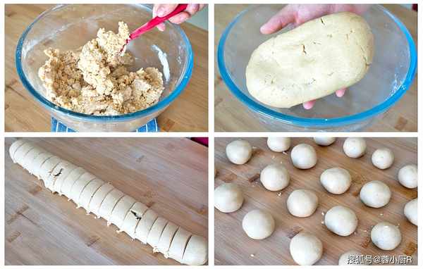3、沒有幹面粉後上手揉面,稍微的揉成一個面團兒就可以,不要過度揉面,原理和之前做桃酥是一樣的;