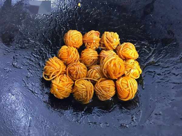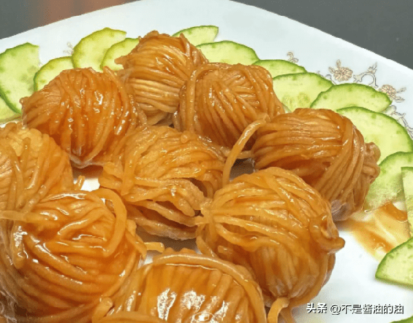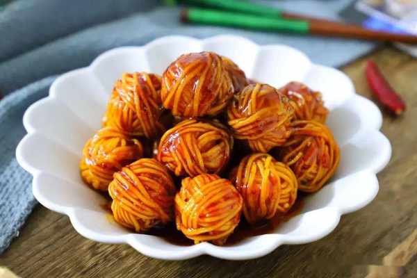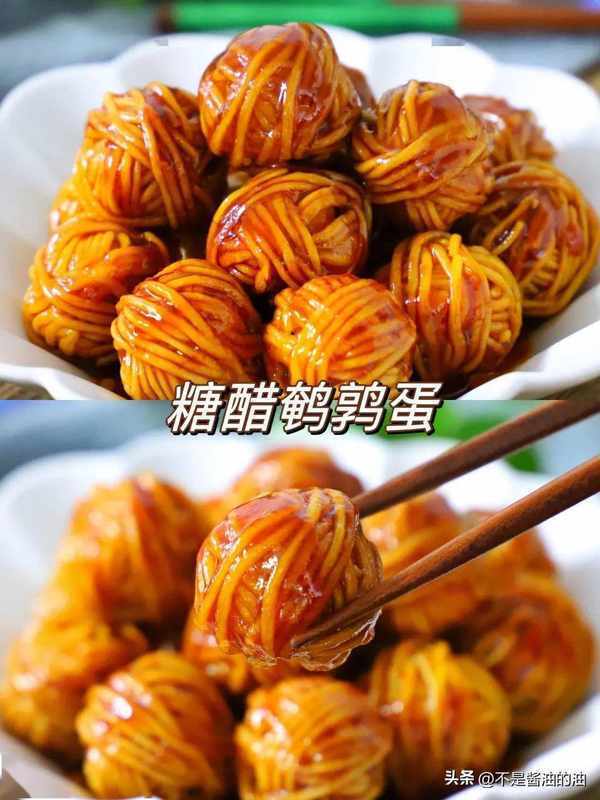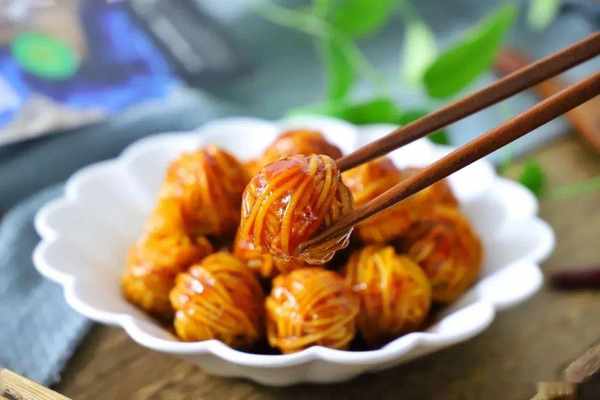 外面裹著的面條,噴香酥脆,沾上糖醋汁,酸酸甜甜,可口開胃。
