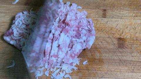 2、加入蝦皮,蝦仁都可以,可以剁一下